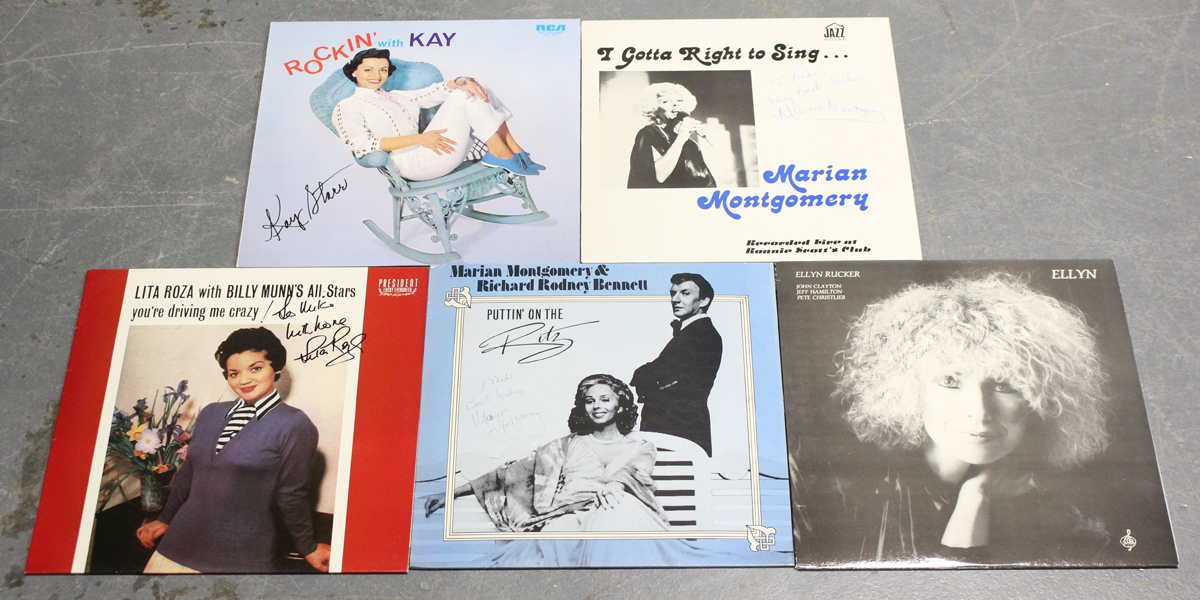 A collection of approximately sixty-eight LP records, all female vocalists, including signed albums by Lita Roza, Marian Montgomery, Kay Starr and Ellyn Rucker, and further albums by Cleo Laine, Ethel Ennis, Patti Page and Jeri Southern.
