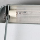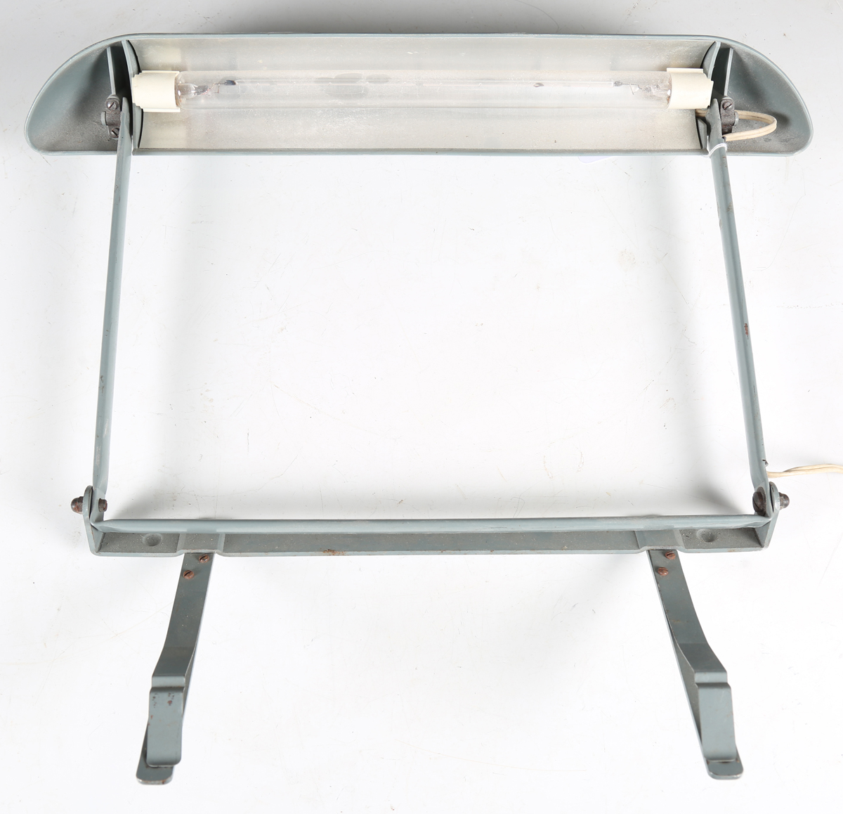 A mid-20th century grey finished metal desk lamp, attributed to Charlotte Perriand, width 44cm.