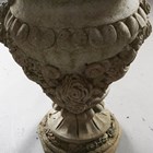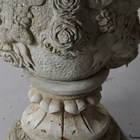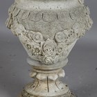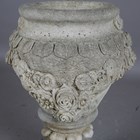 A late 20th century cast composition stone garden urn, the ogee shaped body moulded with rose swags, height 67cm, width 45cm.