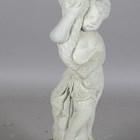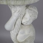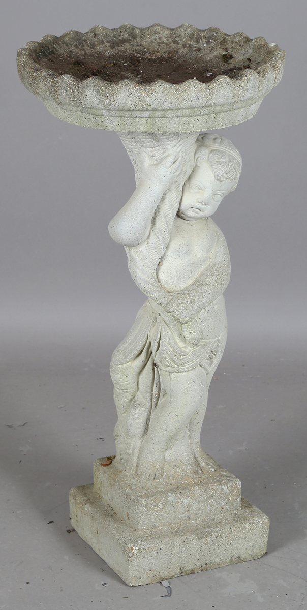 A late 20th century composition stone birdbath with figural putto support, height 82cm.