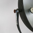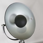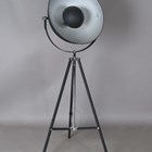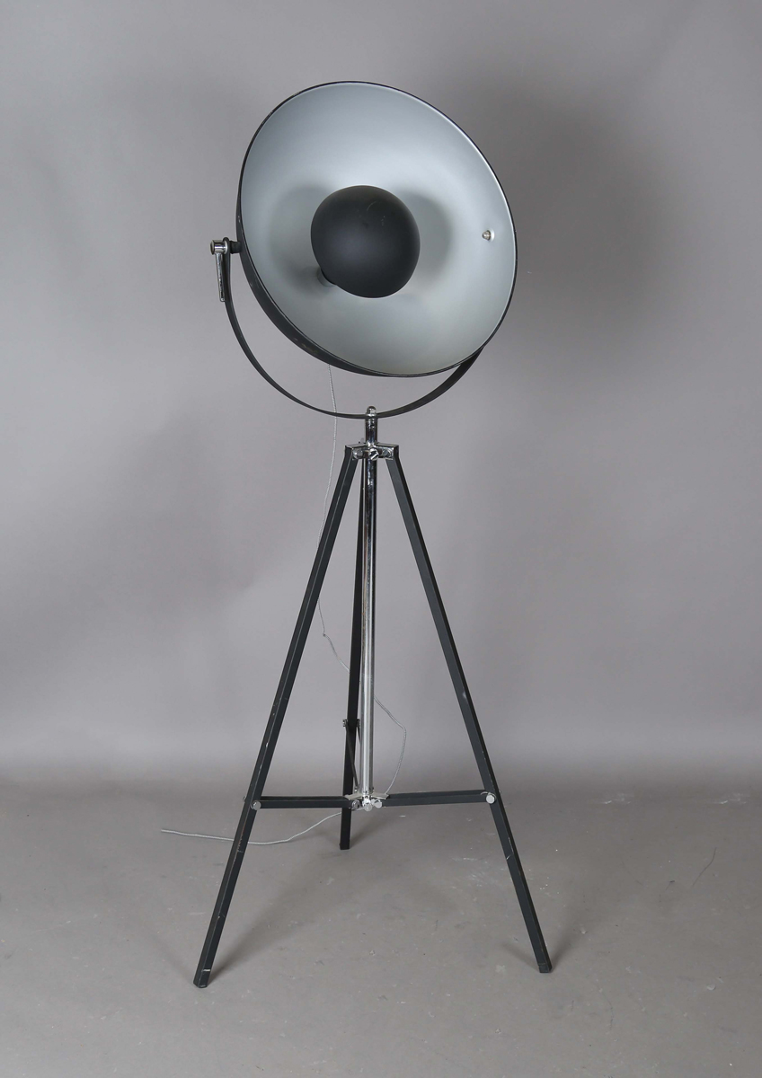 A modern black painted and chromium plated floor lamp, on tripod supports, height 165cm, width 60cm.