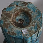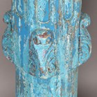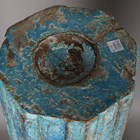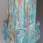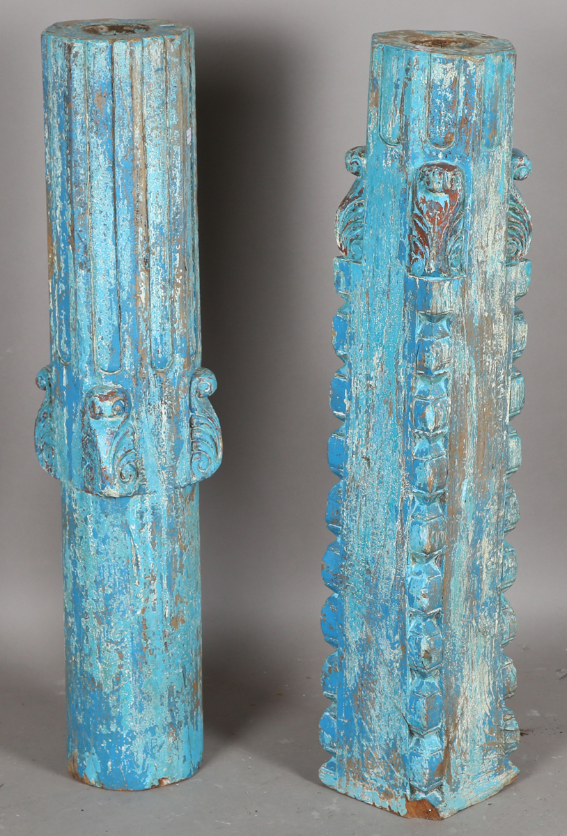 Two 19th century Indian carved hardwood columns, later turquoise painted and converted to pricket candle holders, height 93cm.