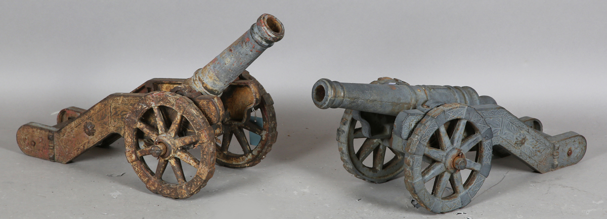 A pair of 20th century cast iron ornamental field cannons, length 75cm.