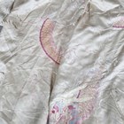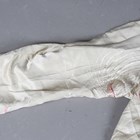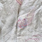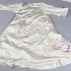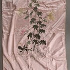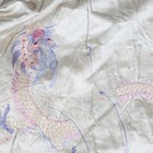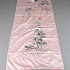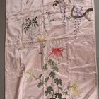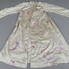 A Chinese ivory silk gown, finely embroidered with dragons amidst vapours, length 128cm, together with a Japanese pink silk embroidered wall hanging, 260cm x 97cm.