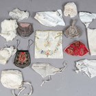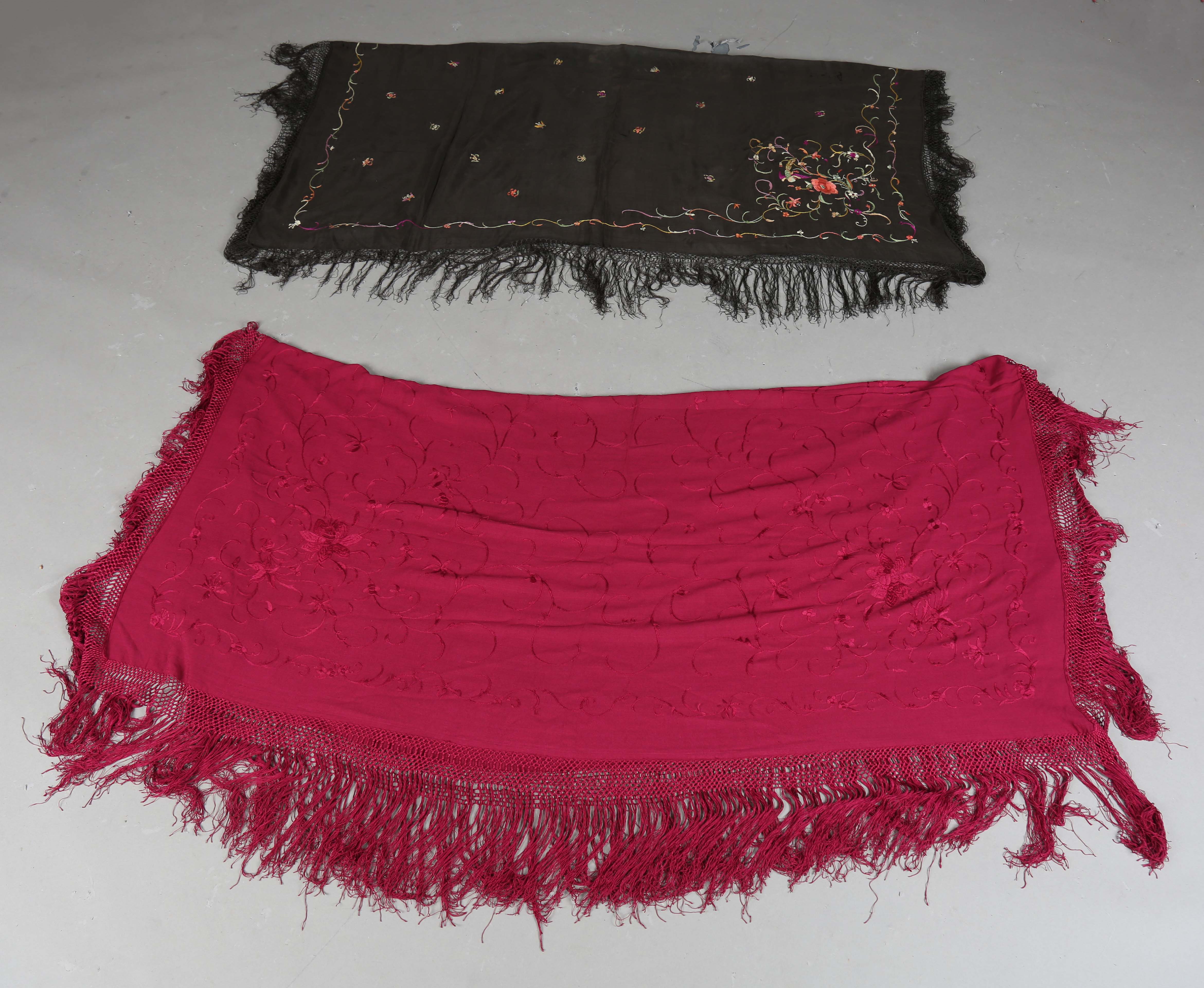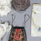 A mixed group of textiles, including two Spanish embroidered shawls, a selection of lace, an Edwardian silk embroidered bag and three purses.