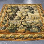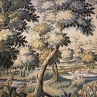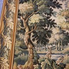 A 20th century French machine tapestry verdure wall hanging depicting a woodland landscape, 224cm x 224cm.