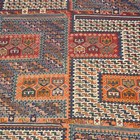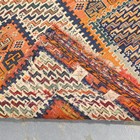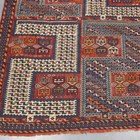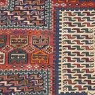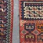 A pair of Caucasian sumak flatweave 'Dragon' siheh, probably Kuba, North-east Caucasus, early 20th century, each compartmentalized field enclosing blue and ivory stylized 'S' motifs, within a blue border, 335cm x 117cm and 315cm x 114cm.