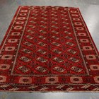 A Turkestan carpet, late 20th century, the claret field with four columns of guls, within a sunburst gul border, 280cm x 198cm.