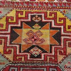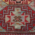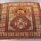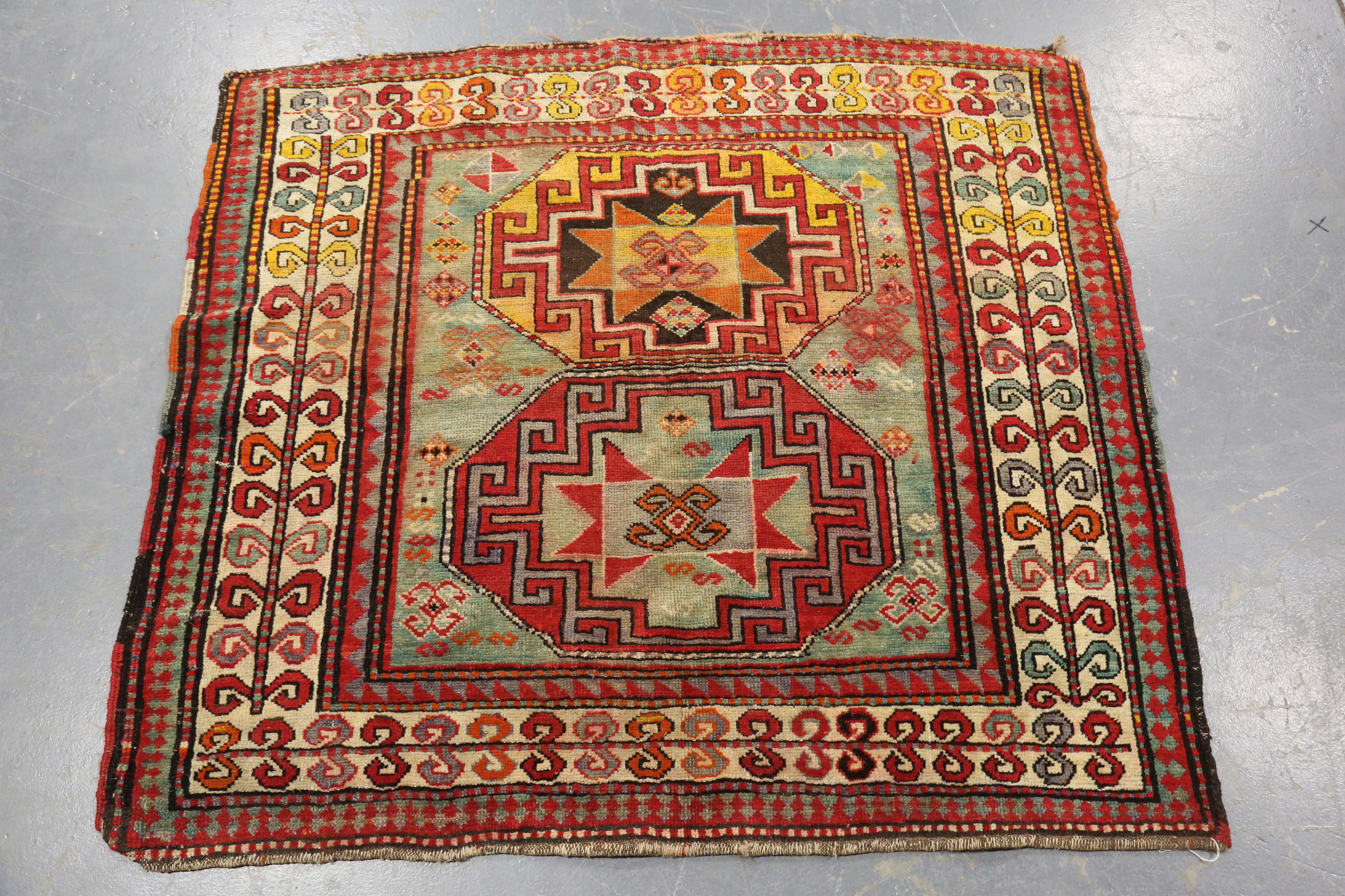 A small Kazak rug, West Caucasus, late 19th/early 20th century, the faded green field with two bold medallions, within an ivory vine border, 132cm x 121cm.