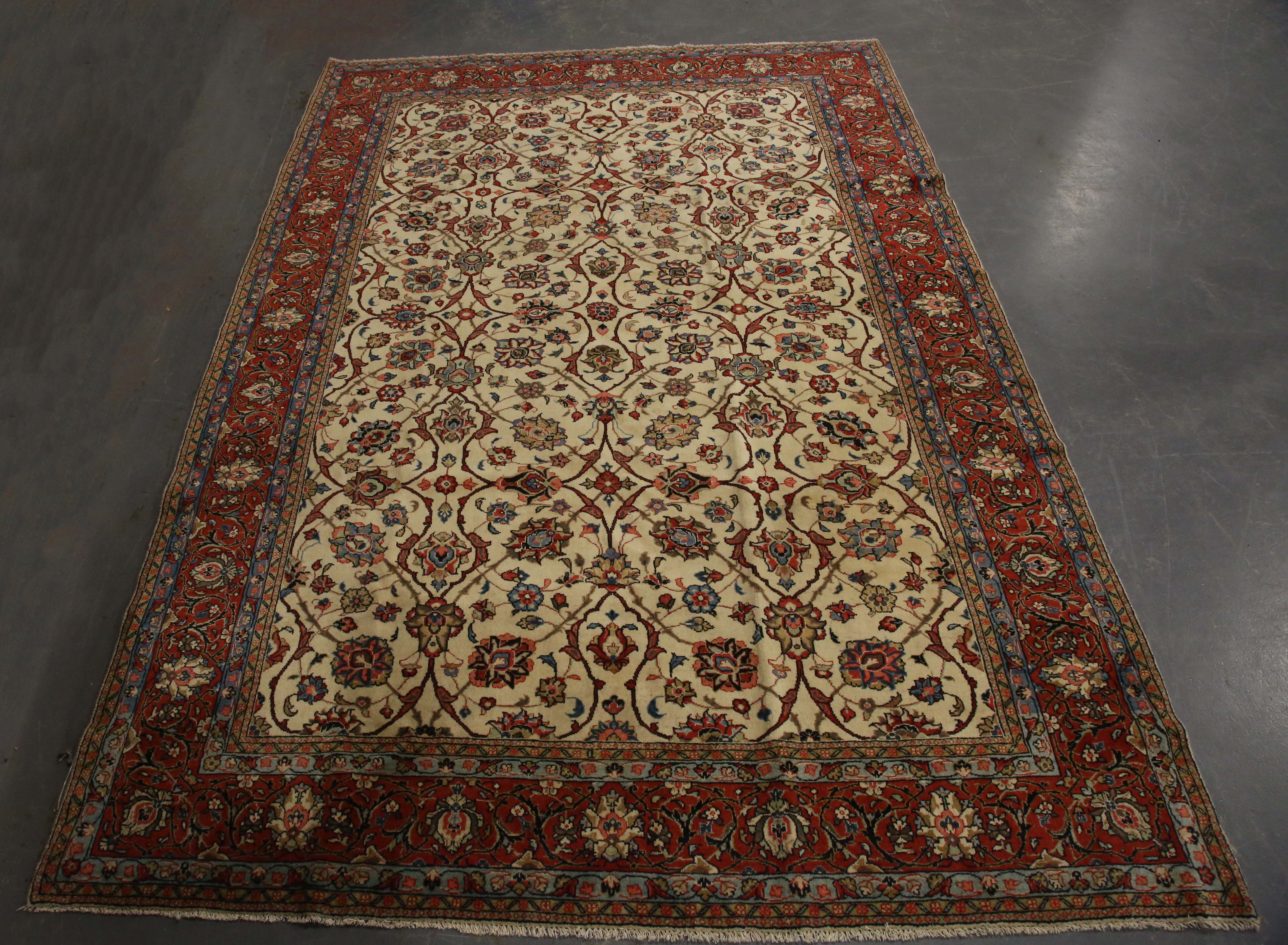 A Mahal carpet, North-west Persia, mid/late 20th century, the ivory field with overall scrolling tendrils issuing palmettes and leaves, within a red palmette and vine border, 310cm x 214cm.