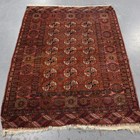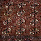 A Tekke rug, West Turkestan, early 20th century, the pale plum field with overall columns of guls, within a sunburst gul border, 166cm x 130cm.