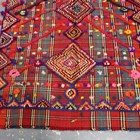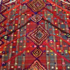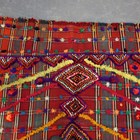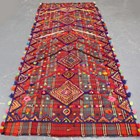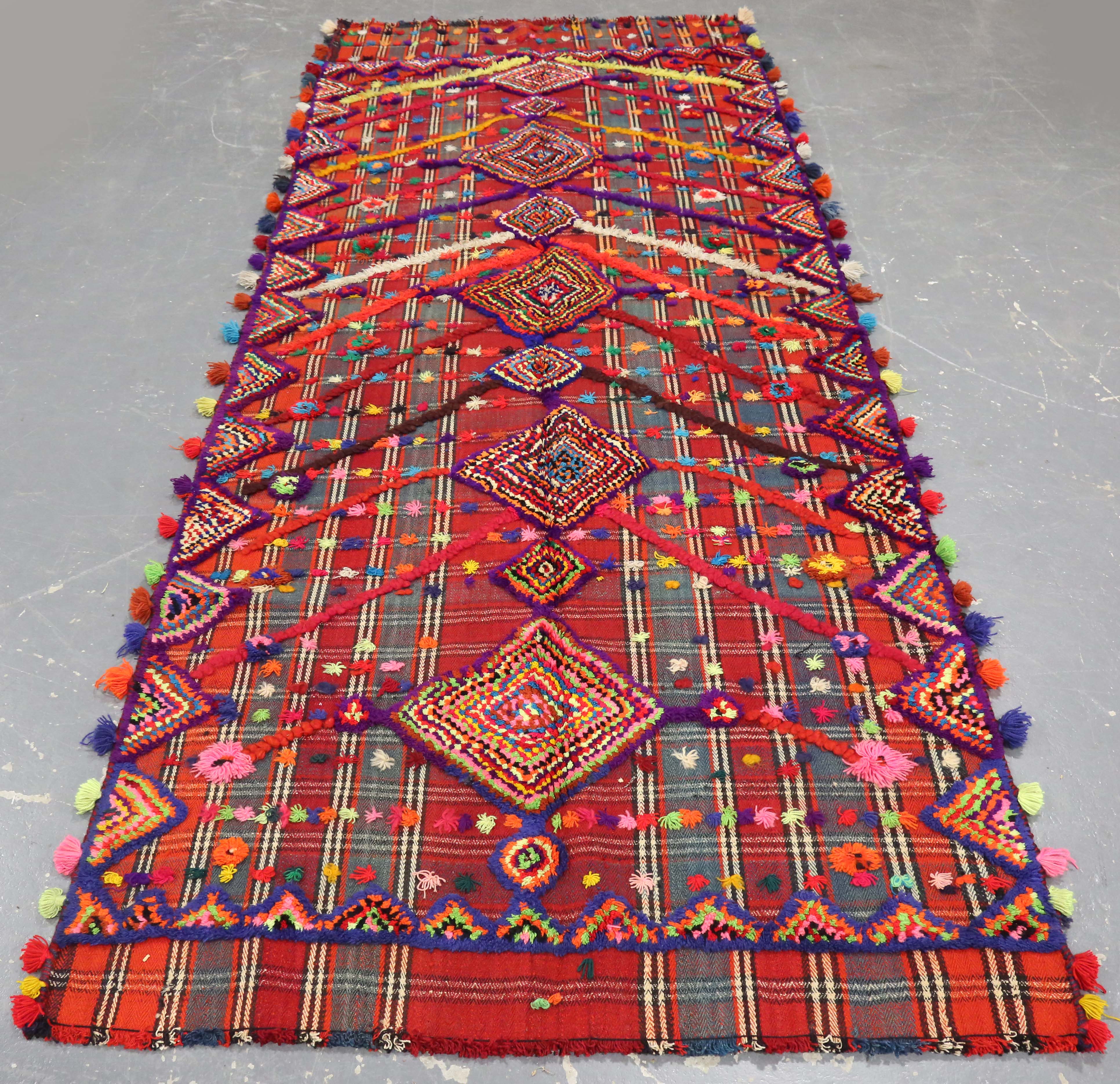 A Jajim kilim, late 20th century, the polychrome flatweave field with raised pile medallions and diagonal chevrons, 320cm x 134cm.