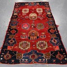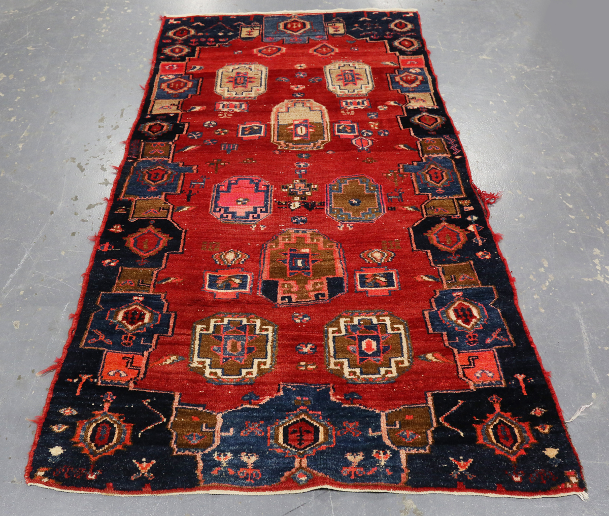 A Hamadan rug, North-west Persia, mid-20th century, the red field with overall guls, within a blue complimentary border, 220cm x 120cm.