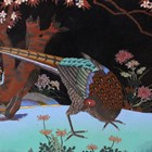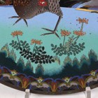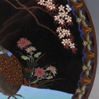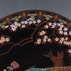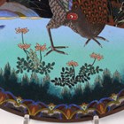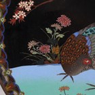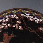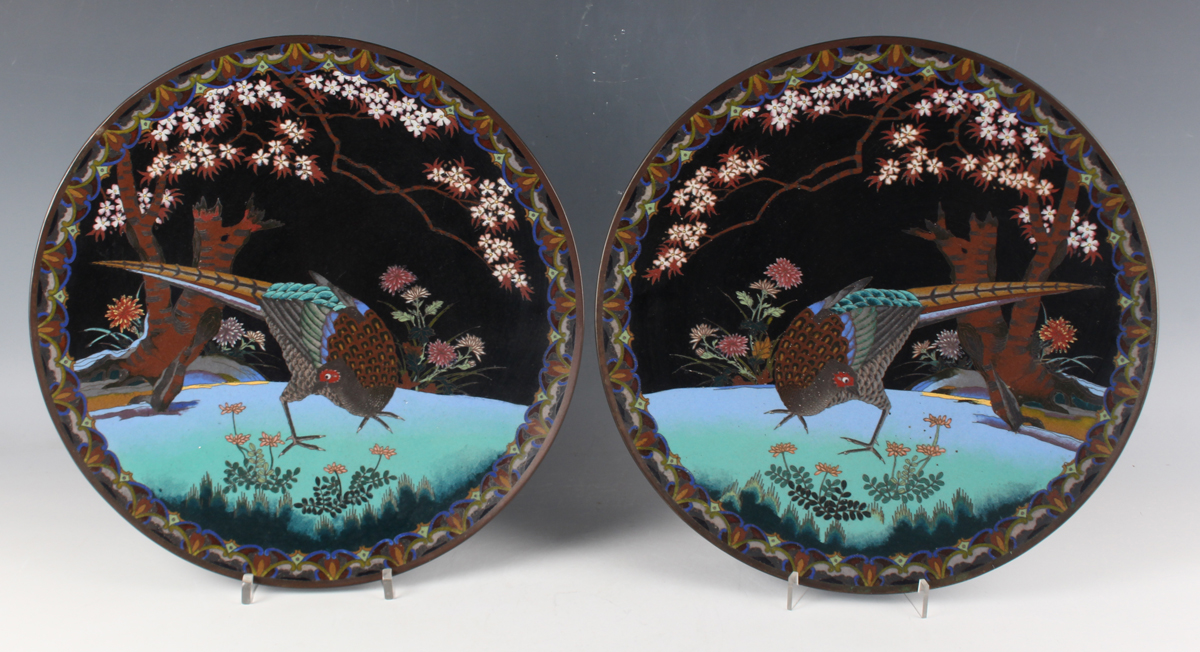 A pair of Japanese cloisonné circular dishes, Meiji period, each decorated with a pheasant beneath blossoming branches on a black ground, diameters 30.5cm.