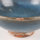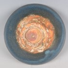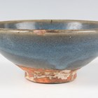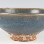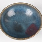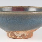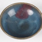 A Chinese Junyao purple splashed pottery bowl, probably Song dynasty or later, of hemispherical form, covered in a speckled blue glaze with purple splash to interior, height 4.8cm, diameter 11.5cm (minor rim retouching/restoration).