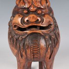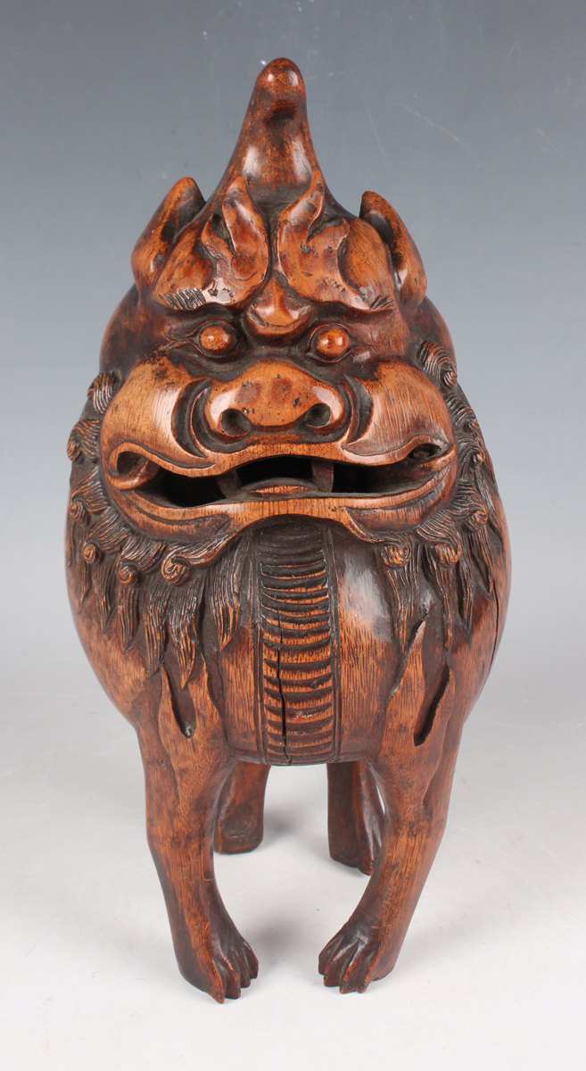 A Chinese carved bamboo Luduan figure, late 19th/early 20th century, the mythical Buddhistic lion modelled standing four-square with finely carved facial detail, pierced mouth and incised hair, height 25cm (minor faults).