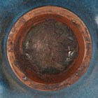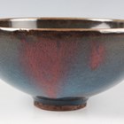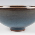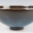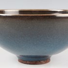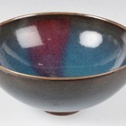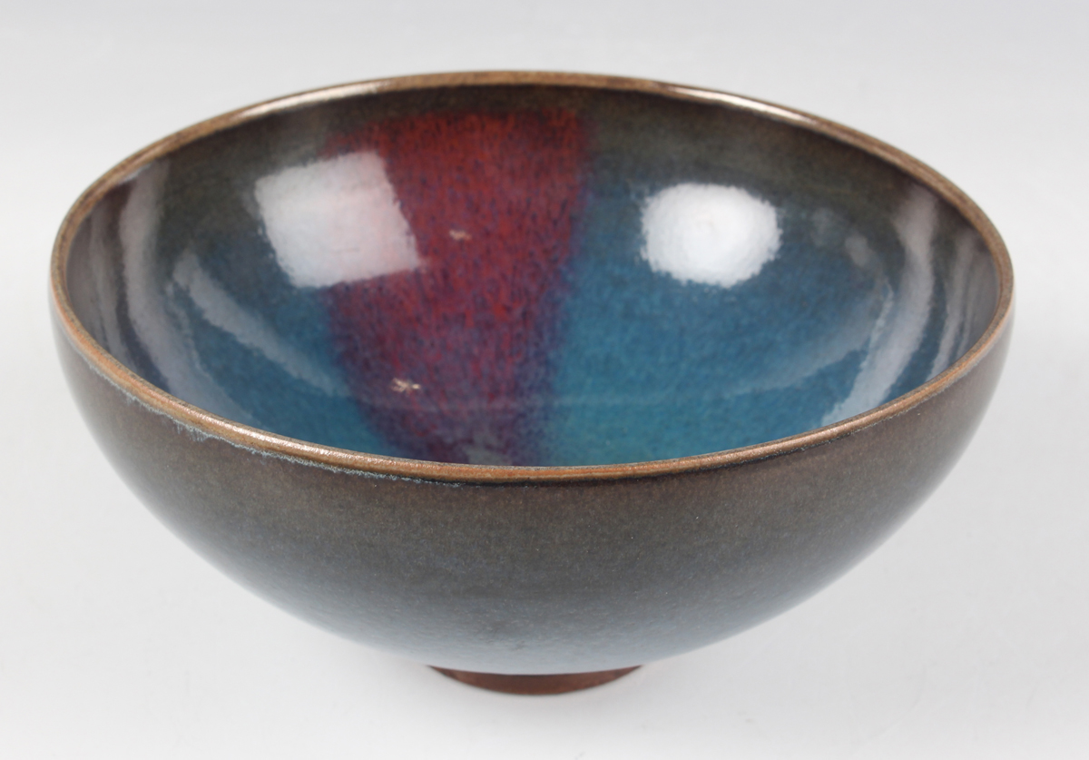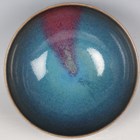 A Chinese Junyao-type purple splashed pottery bowl, Yuan dynasty style but later, of hemispherical form, covered in a blue glaze with purple splash, height 6.5cm, diameter 13.9cm.