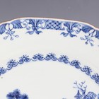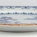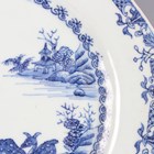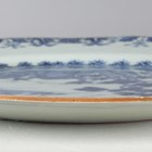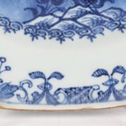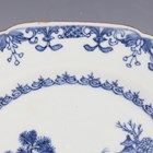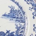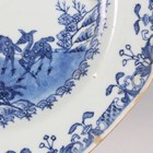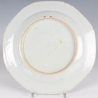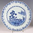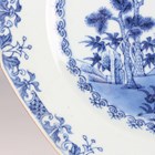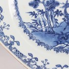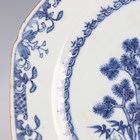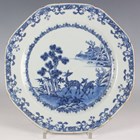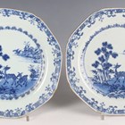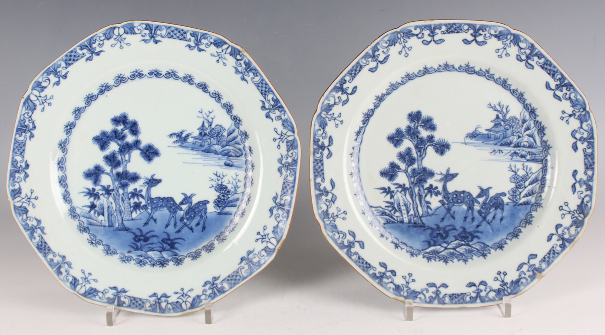 A pair of Chinese blue and white export porcelain octagonal plates, Qianlong period, each painted with a pair of deer beside a pine tree, with pavilion beyond, width 22.2cm (minor retouching/restoration to rims).