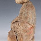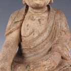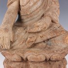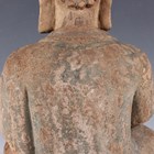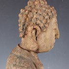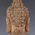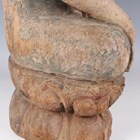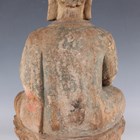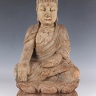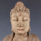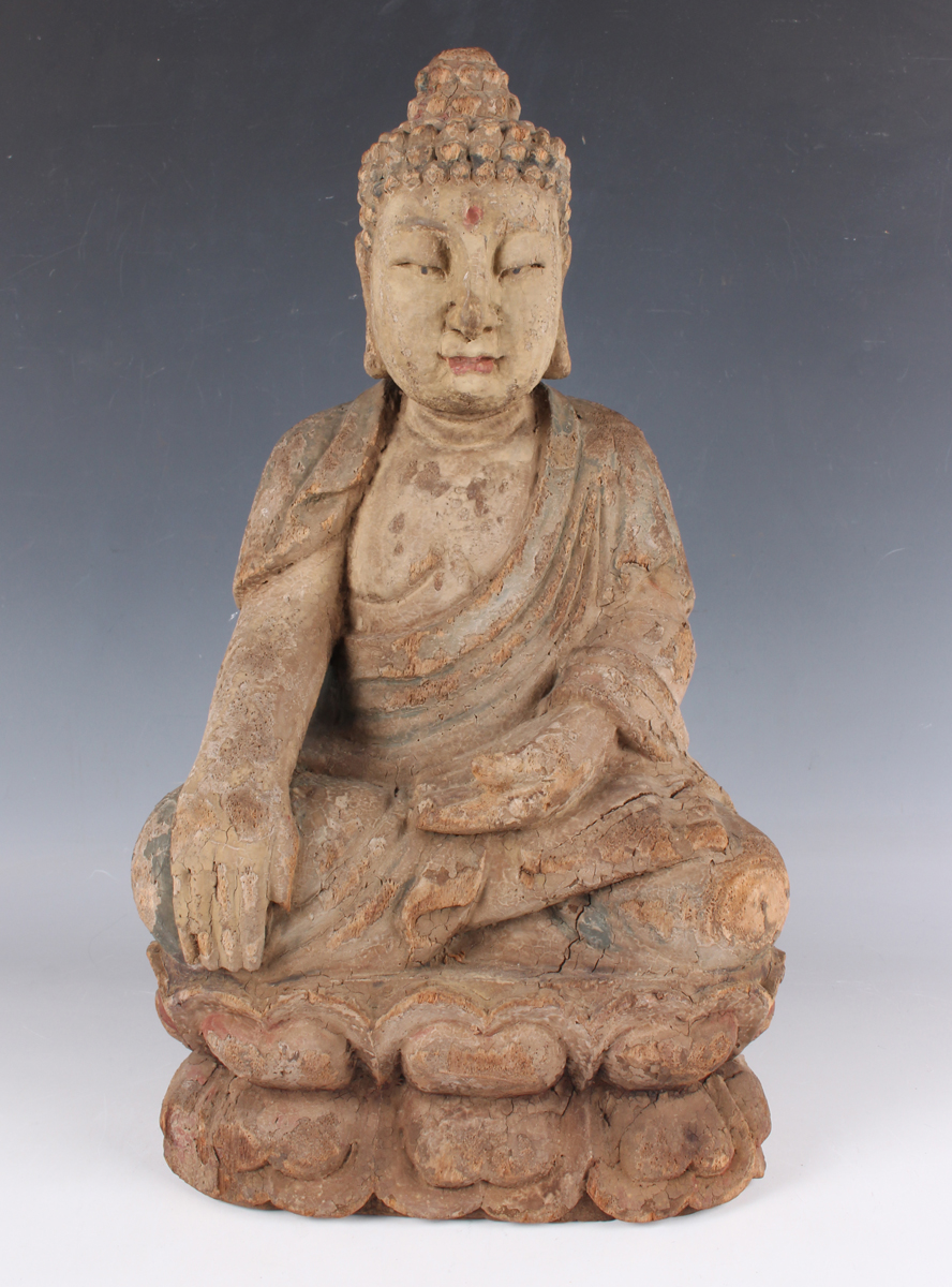 A South-east Asian carved wood and gesso figure of Buddha, probably late 19th century, modelled seated in dhyanasana on a double lotus throne, height 44cm.