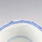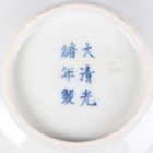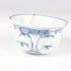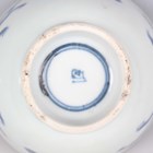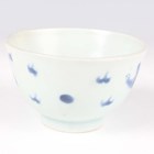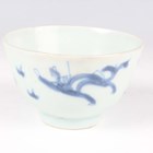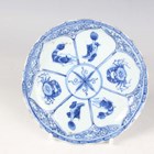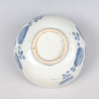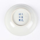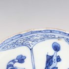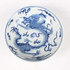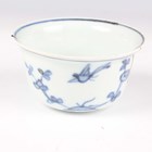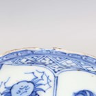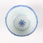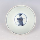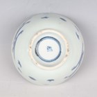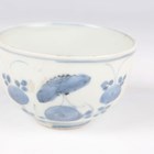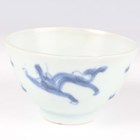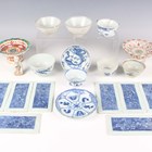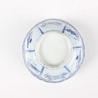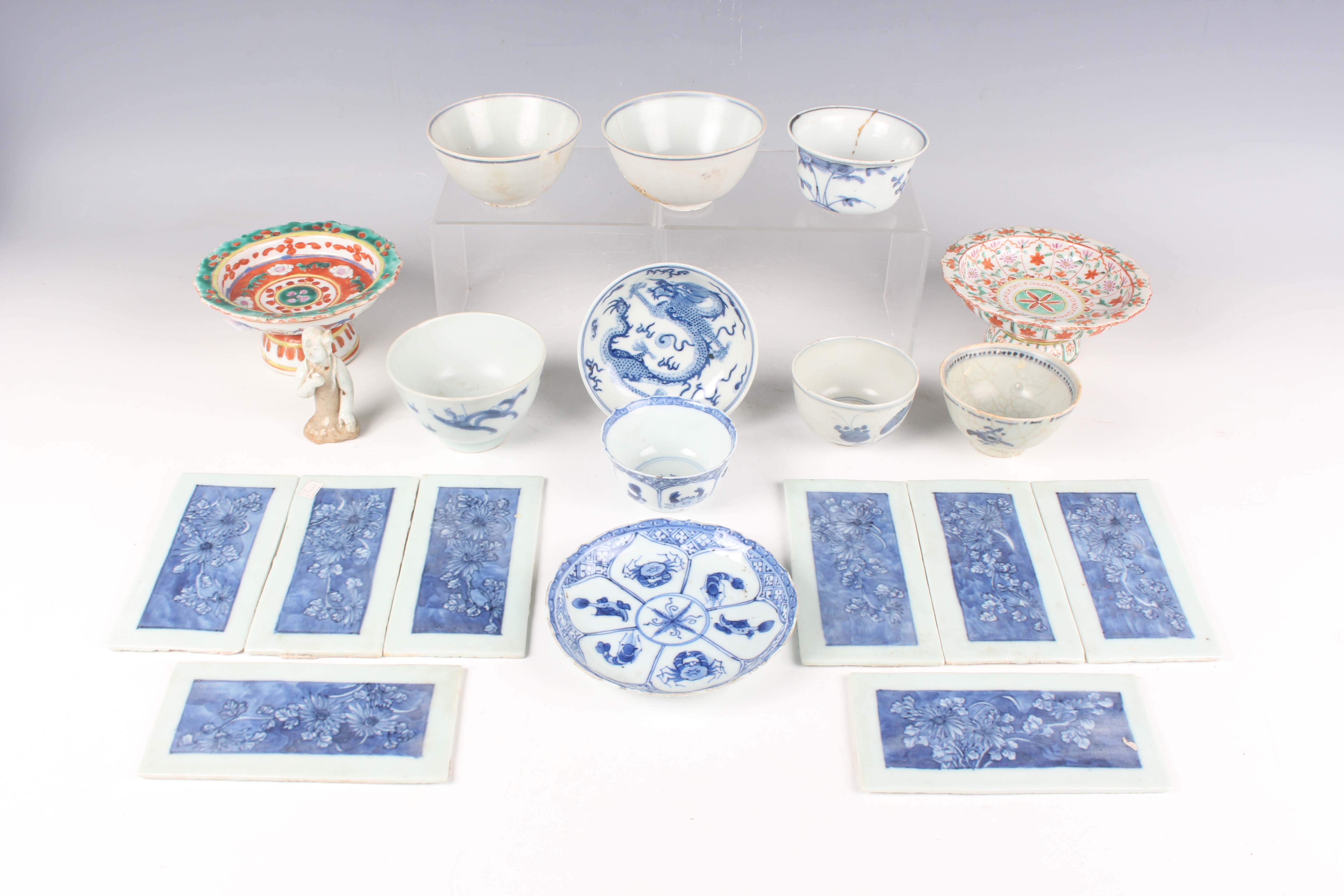 A group of Chinese porcelain, including six blue and white teabowls, Ming dynasty, diameters ranging from 6.8cm to 9.2cm, a set of eight blue and white rectangular panels, painted with flowers, 6.6cm x 13.3cm, a blue and white saucer, mark of Guangxu, painted with a dragon, diameter 9.9cm, and two Thai market Bencharong ware small footed dishes, diameters 12.5cm.