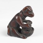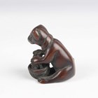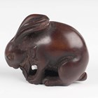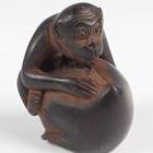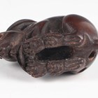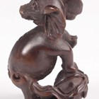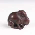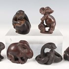 A group of six Chinese carved hardwood netsuke style figures, 20th century, each modelled as an animal, including a snake, rabbit and monkey, heights ranging from 3.2cm to 4.7cm (elephant trunk chipped).