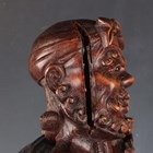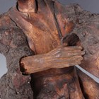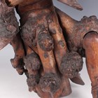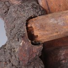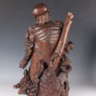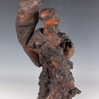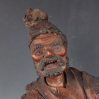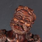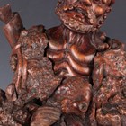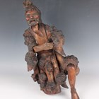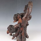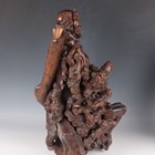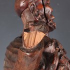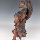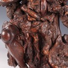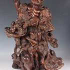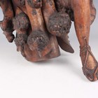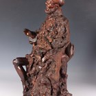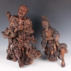 A Chinese carved rootwood sectional figure of Li Tieguai, 19th century, with finely carved facial detail, height 49cm, together with a smaller similarly carved figure, height 39cm (faults).