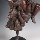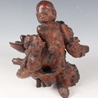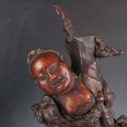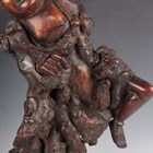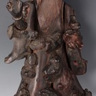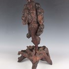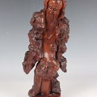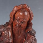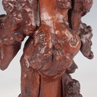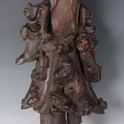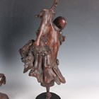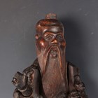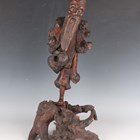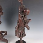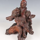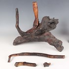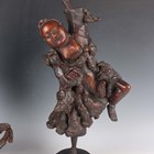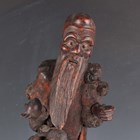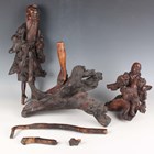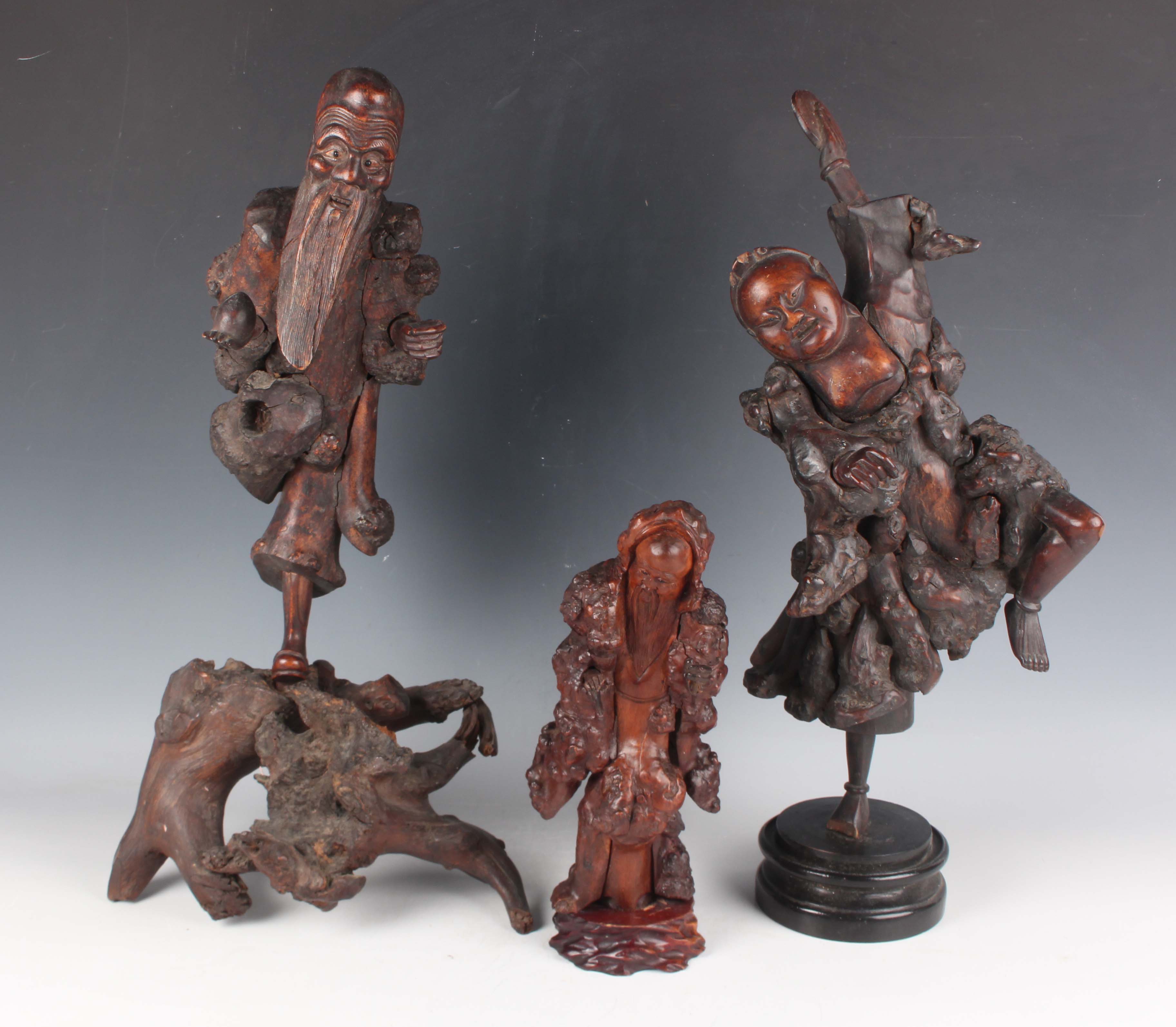 A group of five Chinese carved rootwood figures, 19th century, including three of Shoulao, heights 29cm, 37cm and 50cm, and a small group of other rootwood stands and sectional pieces (all with faults).