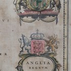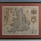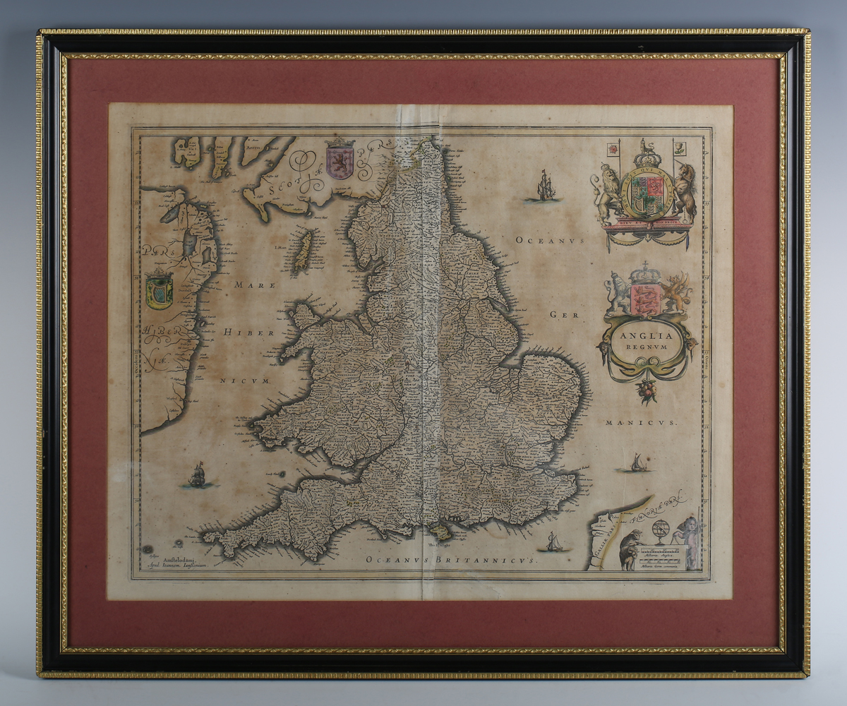 William Blaeu - 'Anglia Regnum': map of England, engraving with hand-colouring, p.39cm x 49.5cm, within a Hogarth style frame.