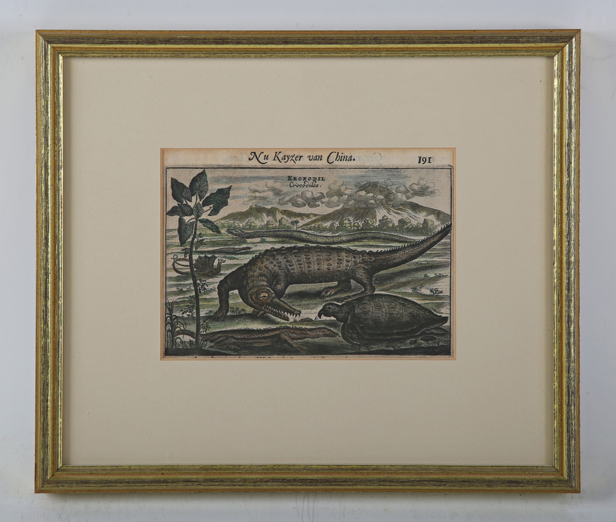 Dutch East Indian School (17th/18th century) - ‘Gezantscapaan den Grooten Cham’; ‘Nu Kayzer van China’; a set of five engravings (plates 191, 194, 198, 200, 221) with hand-colouring, each 12cm x 16cm, within gilt frames (5).