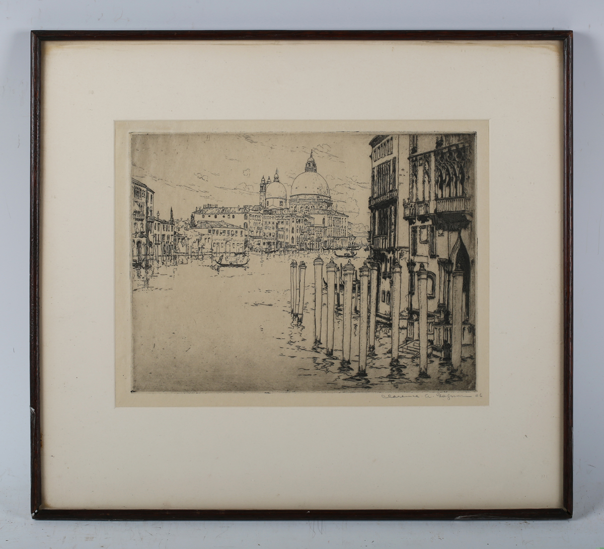Clarence Alphonse Gagnon (Canadian 1881-1942) - Grand Canal, Venice, 1906, drypoint etching, signed and dated ’06 in pencil lower right, p.18.5cm x 24.5cm, within a stained wood frame.
