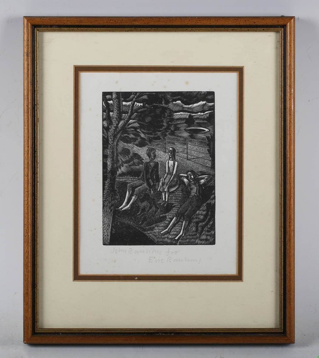 Eric Ravilious (British 1903-1942) - The Dew Pond, 1931, woodcut, signed 'John Ravilious for Eric Ravilious', p.16.5cm x 12cm, within a wood frame. Provenance: from the estate of the late Raymond Briggs, the world-renowned author and illustrator of The Snowman, Father Christmas and Fungus The Bogeyman.