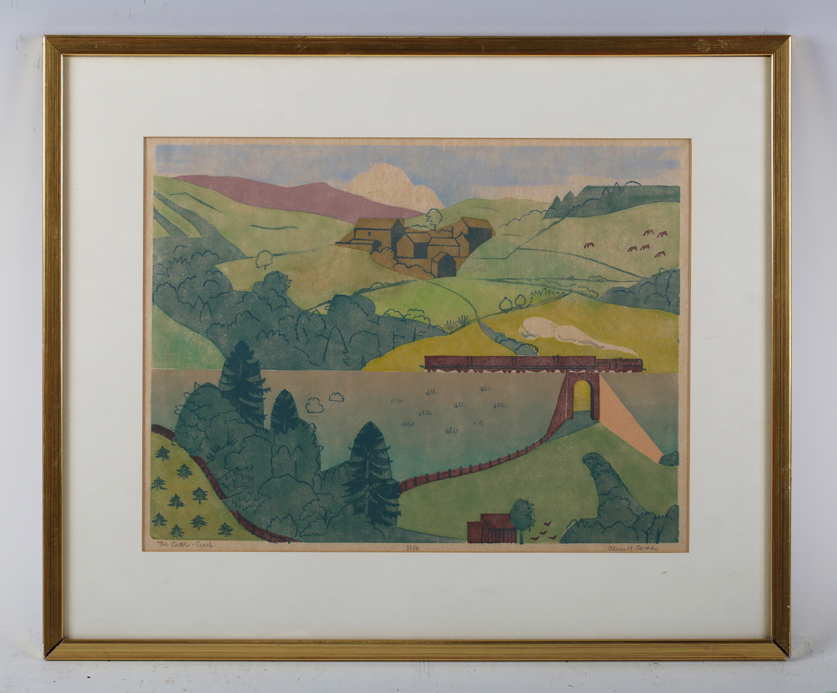 Alice Margaret Coates (British 1905-1978) - ‘The Cattle-Creep’, colour linocut, signed lower right, numbered 3/50 lower centre, titled lower left, p.25.5cm x 33.5cm, within a gilt frame.