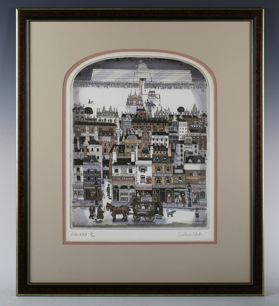 Graham Clarke (British b.1941) - ‘Albert All’, coloured etching with aquatint, signed lower right, titled and numbered 12/200 lower left, p.43cm x 34cm, within a gilt and faux walnut frame.
