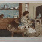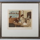 Bernard Dunstan (British 1920-2017) - Interior with girl wrapped in a towel; Interior with woman seated at a table, Model in an interior, three colour lithographs, all signed lower right, all numbered lower left 65/200, 177/240 and 9/150 respectively, the larger 57cm x 46cm, all within gilt frames (3).