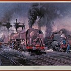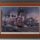 Terence Cuneo (British 1907-1996) - 'Stabling for Giants - The Locomotive Depot, Boulogne', colour print, signed lower right, numbered 13/500 lower left, 51cm x 71.5cm, within a stained wood frame.