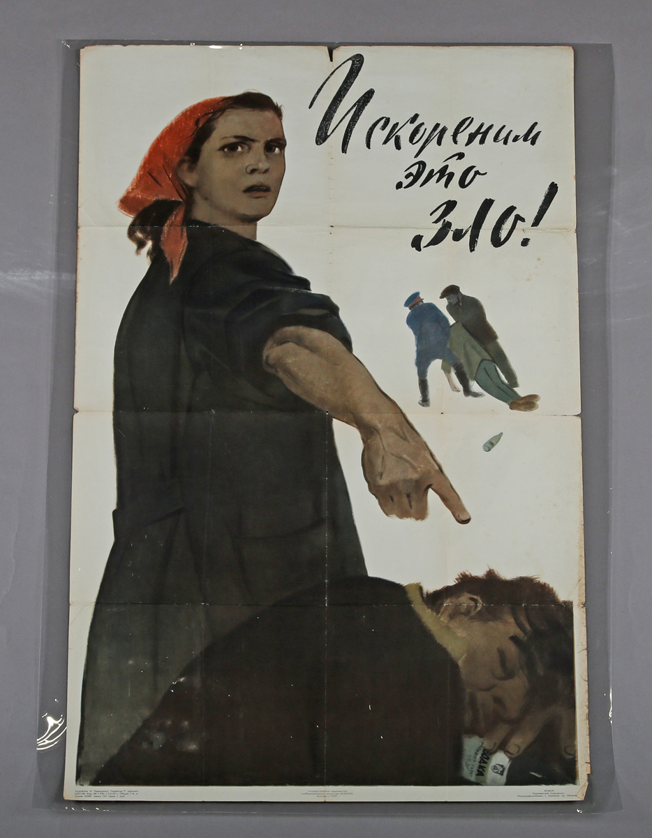 Russian School (mid-20th century) - ‘Eradicate Evil?’, anti-alcohol poster, published Moscow 1959, 93cm x 56.5cm, together with ‘The Fiesta de toros in Spain’, travel poster, Juan Rues, both unframed (2).