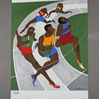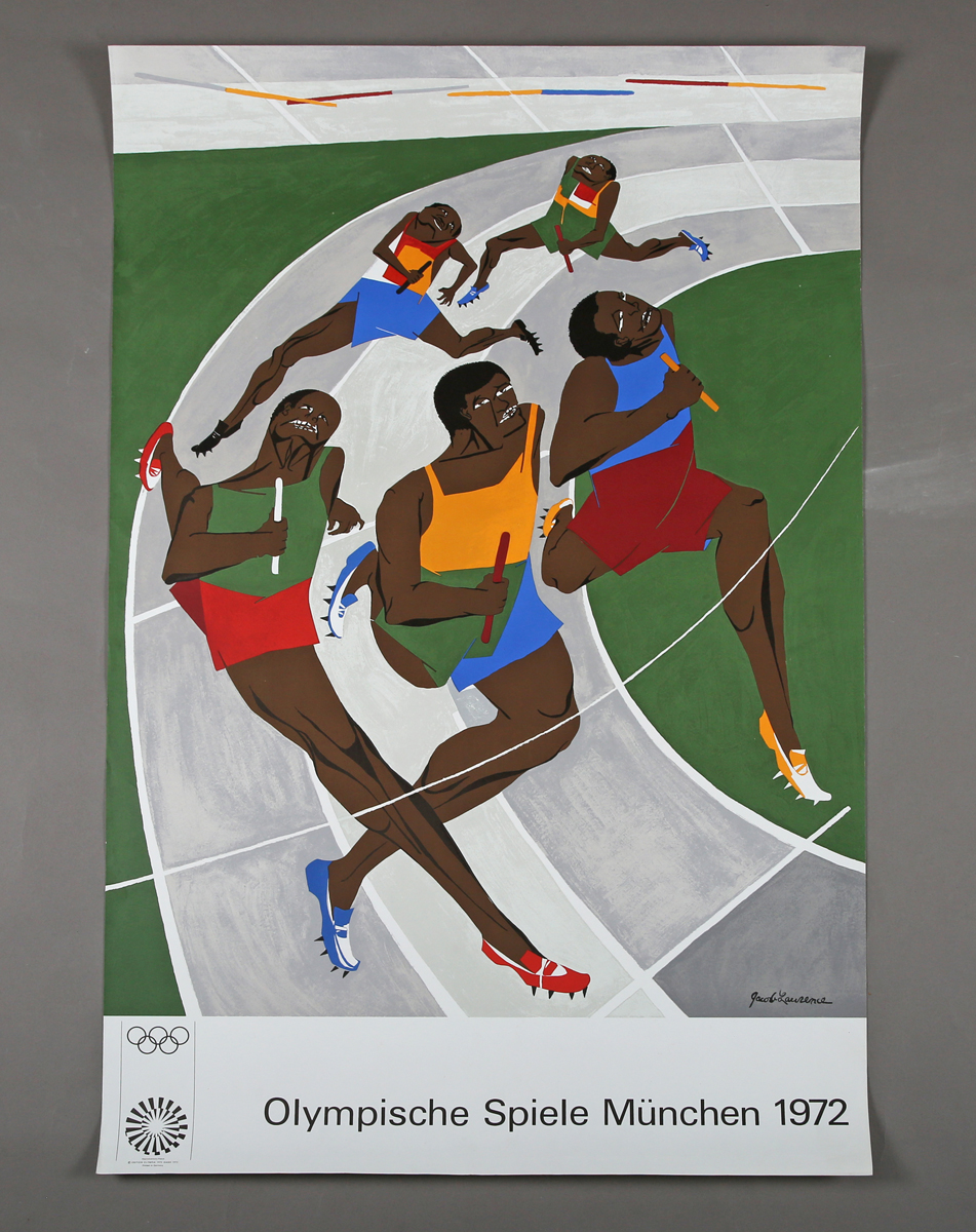After Jacob Lawrence (African/American 1917-2000) - 'Olympische Spiele München 1972', an original colour lithographic Munich Olympic poster for the relay, signed as part of the image, Edition Olympia 1972 GmbH, 101cm x 64cm, unframed.