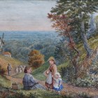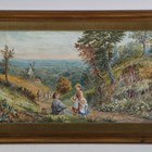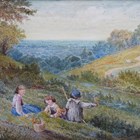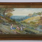 Manner of Myles Birket Foster (British 1825-1899) - Landscapes with children playing, a pair, watercolour, indistinctly signed with monogram, one lower right one lower left, each 24cm x 45cm, both within gilt frames (2).