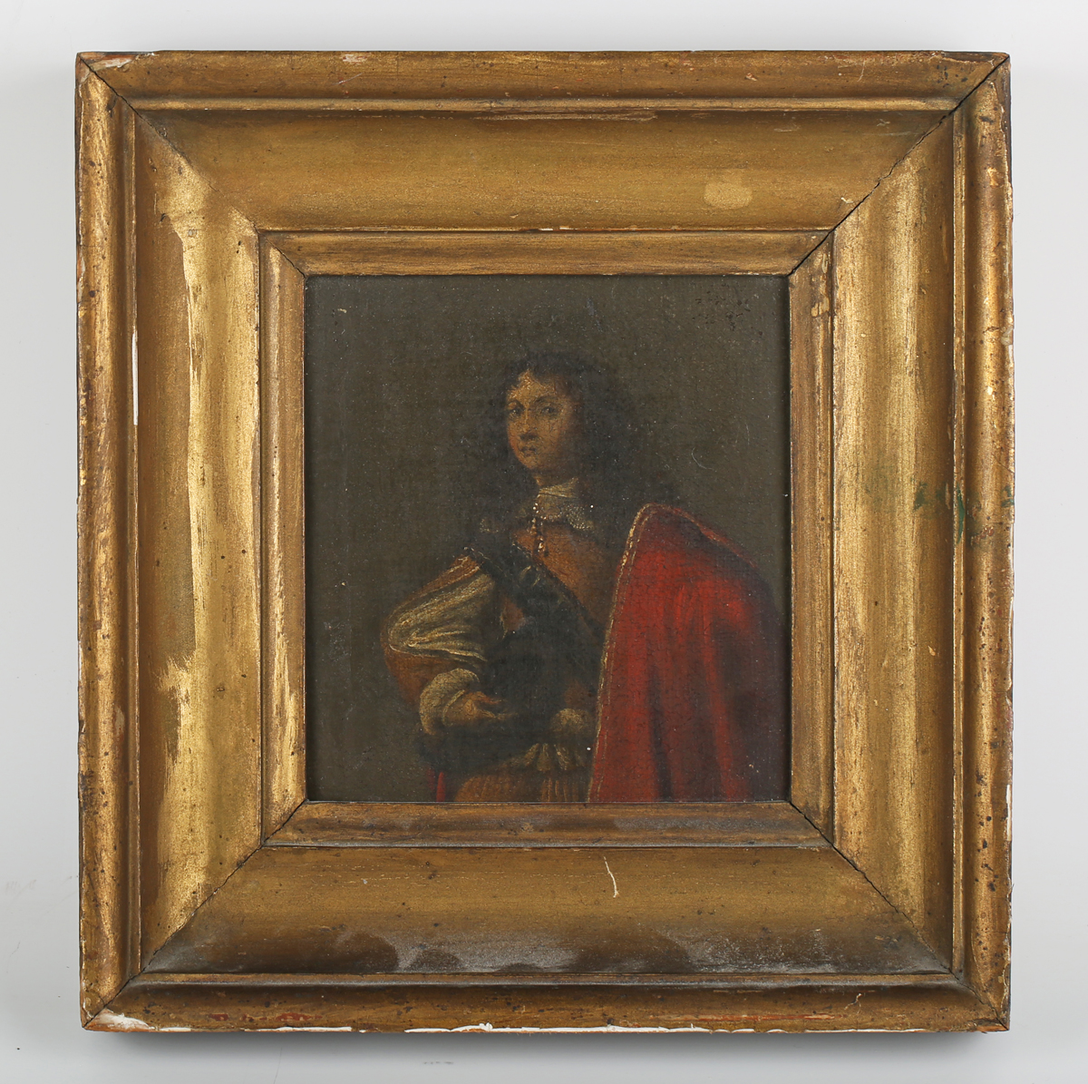 Continental School (18th/19th century) - Portrait of a gentleman in late 17th century dress, oil on canvas, 15cm x 13cm, within a gilt composition frame of deep section.