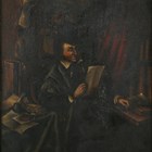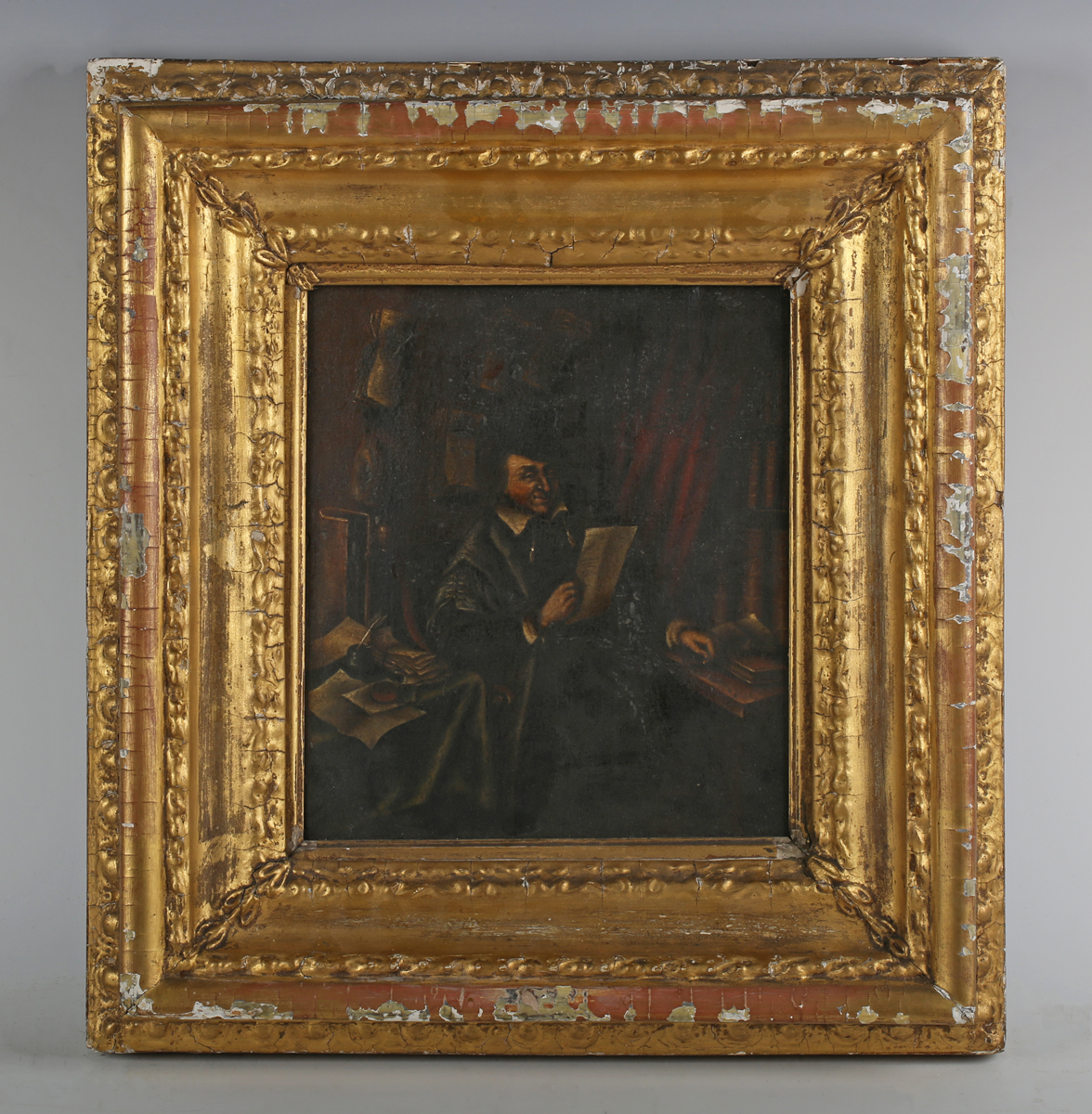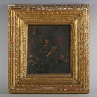 Manner of Adriaen van Ostade - Lawyer reading a document, oil on canvas, 26cm x 22cm, within a carved giltwood frame.