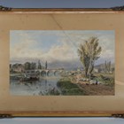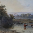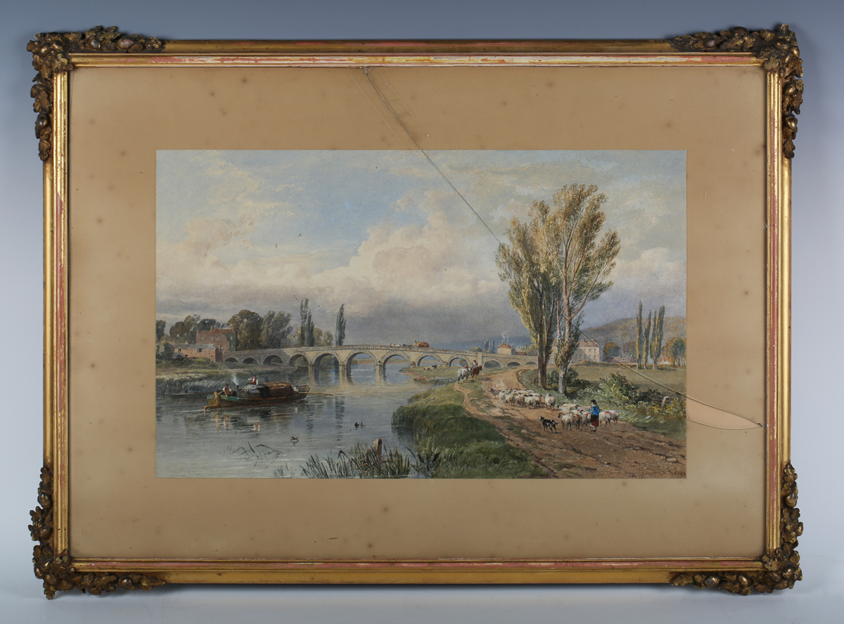 George Arthur Fripp (British 1813-1896) - Bridge in a river landscape, possibly the Old Trent Bridge; River landscape with cattle watering, a pair, watercolour with scratching out, both signed, one lower right, one lower left, each 31cm x 50cm, both within gilt composition frames with foliate corners (2).