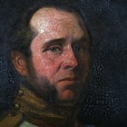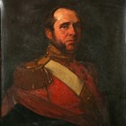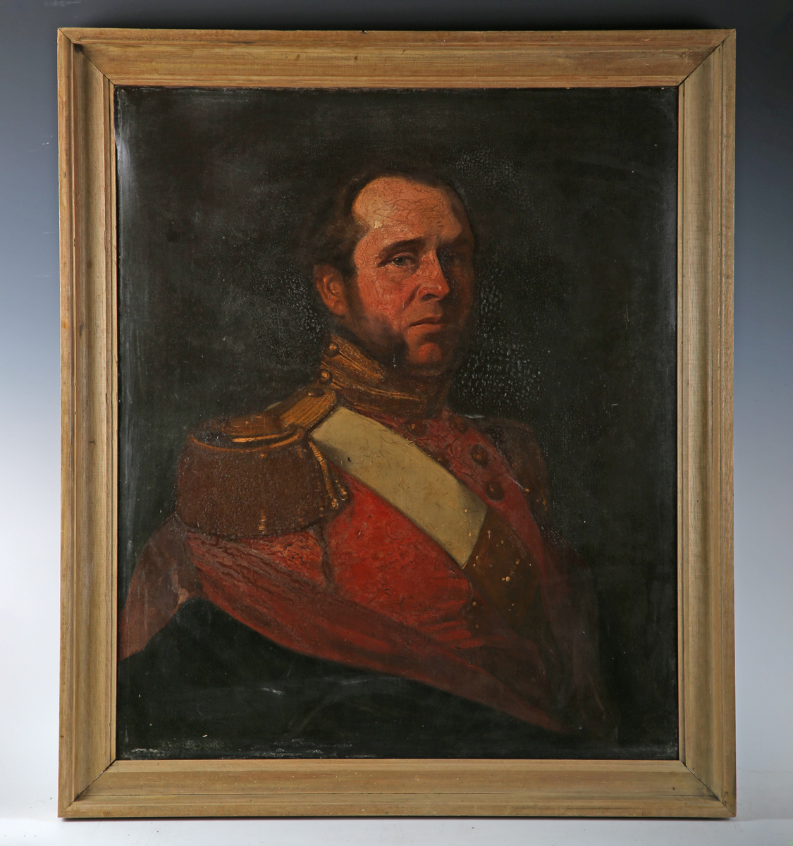 English School (19th century) - Portrait of a gentleman in red military uniform, oil on canvas, 76cm x 63.5cm, within a plain wood frame.