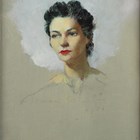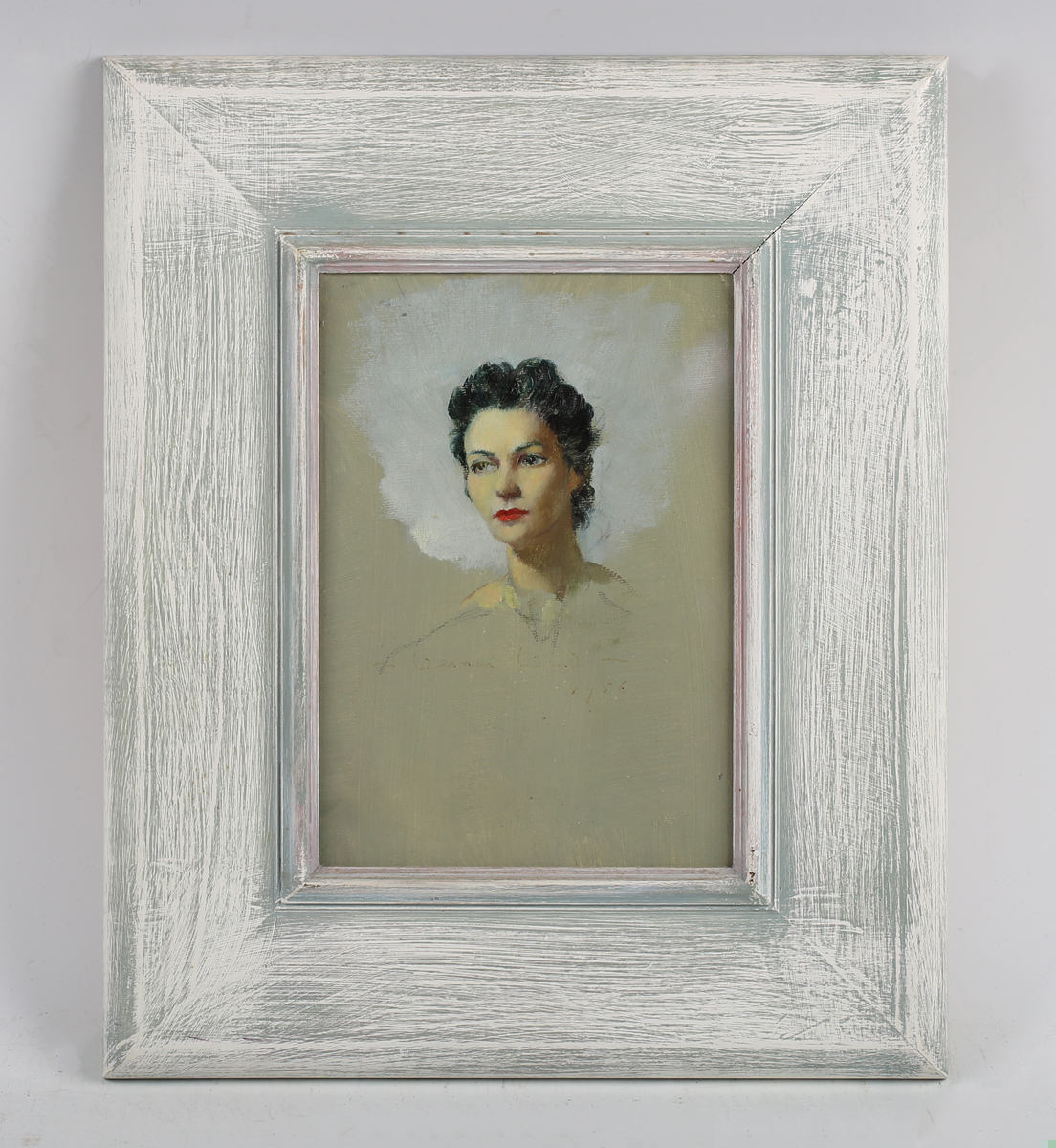 Vernon de Beauvoir Ward (British 1905-1985) - ‘Victoria’: head study of a lady, oil on canvas-board, 21cm x 14cm, within a white/grey painted frame, with original purchase receipt from Beckstones Gallery, Cumbria, 25/9/1994.