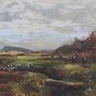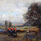 Richard Gay Somerset (British 1848-1928) - ‘Going to the Meet’; ‘Full Cry’, a pair, oil on board, both signed with initials lower right, each 12.5cm x 21cm, both within swept gilt composition frames (2).