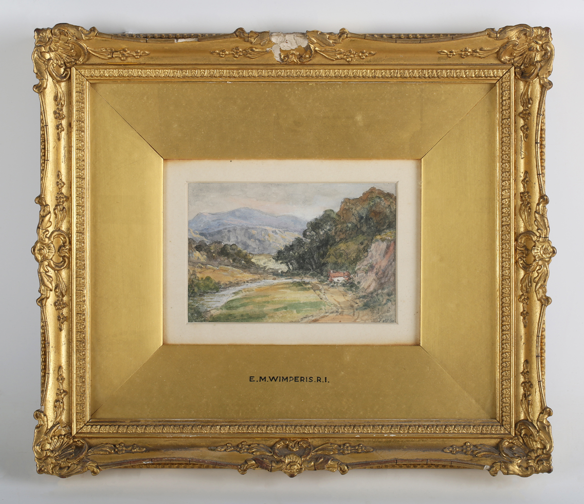 Edmund Morrison Wimperis (British 1835-1900) - River landscapes, a set of three, watercolour, all signed with initials, each 7.5cm x 11cm, all within swept gilt composition frames and slips (3).
