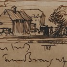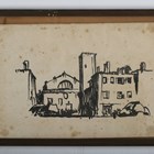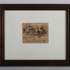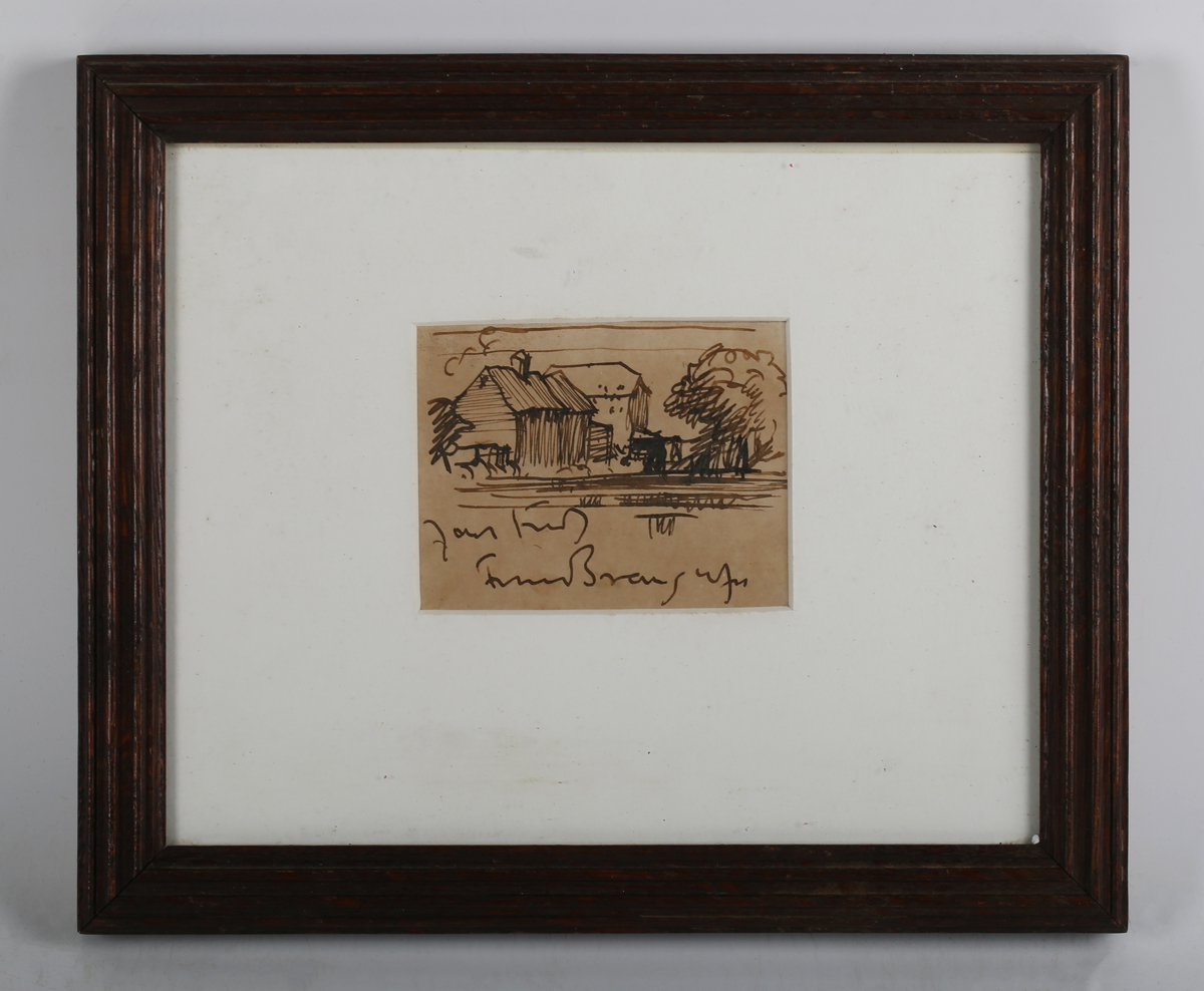 Frank Brangwyn (British 1867-1956) - Old Barns, pen and ink, signed 'Yours truly Frank Brangwyn' beneath image, 8cm x 10.5cm, together with a further architectural subject by the same hand, lithograph, both within stained wood frames (2).