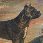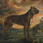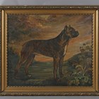 Circle of Anton Weinberger (German 1843-1912) - ‘Belgo Fardas’: portrait of a dog, possibly a Boxer or a Cane Corso, oil on board, inscribed upper left, 95cm x 111cm, within a gilt composition frame.