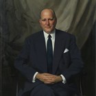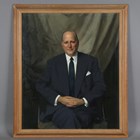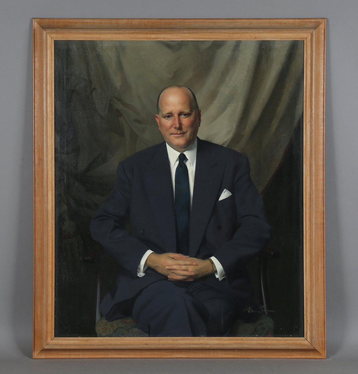 James Gunn (Scottish 1893-1964) - Portrait of Sir Geoffrey Kitchen, oil on canvas, signed lower right, 121cm x 101cm, within an oak frame of plain design. Note: Sir Geoffrey Kitchen was Chairman of United British Securities Trust Ltd and Pearl Assurance Company.