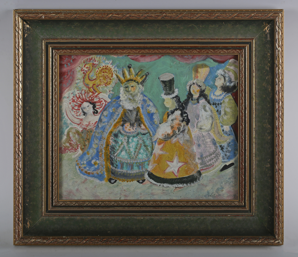 Yootha Rose (Australian 1899-?) - ‘Le Coq d’or’, oil on board, signed and dated 1959 lower right, inscribed verso, 24cm x 29.5cm, within a painted and gilt frame.