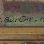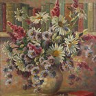 Phyllis Maria Burton (20th century) - Still life of flowers in a vase against a bookshelf, oil on canvas, signed and dated 1952 lower left, 61cm x 51cm, within a gilt composition frame of foliate design.